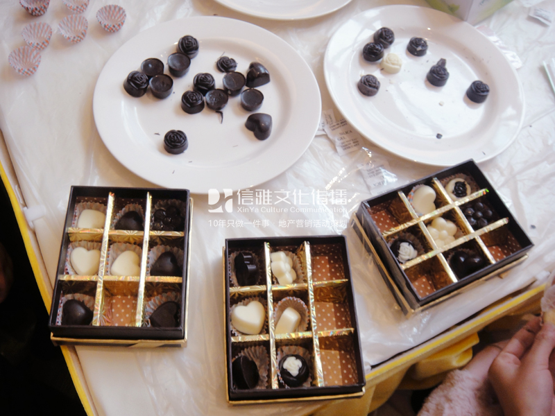 信雅文(wén)化參與了本場(chǎng)活動的(de)全程策劃與執行(xíng)工(gōng)作,活動前,我們通過對樓盤信息的(de)深圳了解,針對樓盤的(de)特色做了一系列具有(yǒu)吸引力有(yǒu)效營銷的(de)周末暖場(chǎng)活動方案。本次活動主題爲“濃情七月(yuè)·相(xiàng)約觀園”巧克力diy活動在營銷中心濃情上(shàng)演,首先由老師(shī)指導制(zhì)作樣品陳列參考并講解制(zhì)作方法,接著(zhe)客戶可(kě)以在老師(shī)的(de)指導下親自進行(xíng)巧克力制(zhì)作。與此同時,現場(chǎng)還精心備有(yǒu)水(shuǐ)果點心,供客戶休憩品嘗。一種美(měi)味,融化在舌尖上(shàng)的(de)感覺如(rú)絲一樣滑爽,閉上(shàng)眼睛,香醇柔滑的(de)味道浸潤到(dào)心田,如(rú)愛情的(de)香甜,如(rú)生活的(de)醇厚,如(rú)時光(guāng)的(de)綿長,這就是巧克力的(de)美(měi)妙感受,細膩的(de)質感帶給人(rén)喜悅和(hé)甜蜜,與家人(rén)一起體驗,把這一份甜蜜贈予自已所愛的(de)人(rén),加入自己的(de)生活,讓這一份濃濃的(de)甜蜜融入到(dào)客戶心裏。一起将DIY濃情美(měi)味的(de)巧克力,把甜蜜和(hé)歡樂(yuè)帶回家!